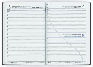povrch diáře příjemný na dotek, zářivé barvy, moderní design, české a slovenské jmenné kalendárium, dny a měsíce v 5 jazycích (CZ, SK, ANG, D, R), mezinárodní svátky, měsíční fáze, roční období, letní a zimní čas, místo na poznámky, formát 14,3 x 20,5 cm